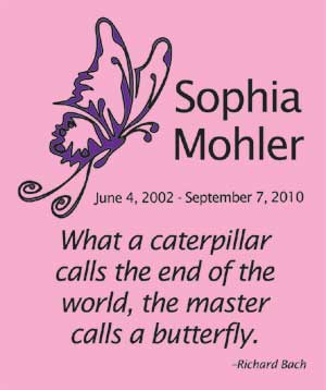 ![]() 12"x16" aluminum plaque with single line beveled border with raised satin silver letters and butterfly logos on a pink background, no additional cost for custom background colors |